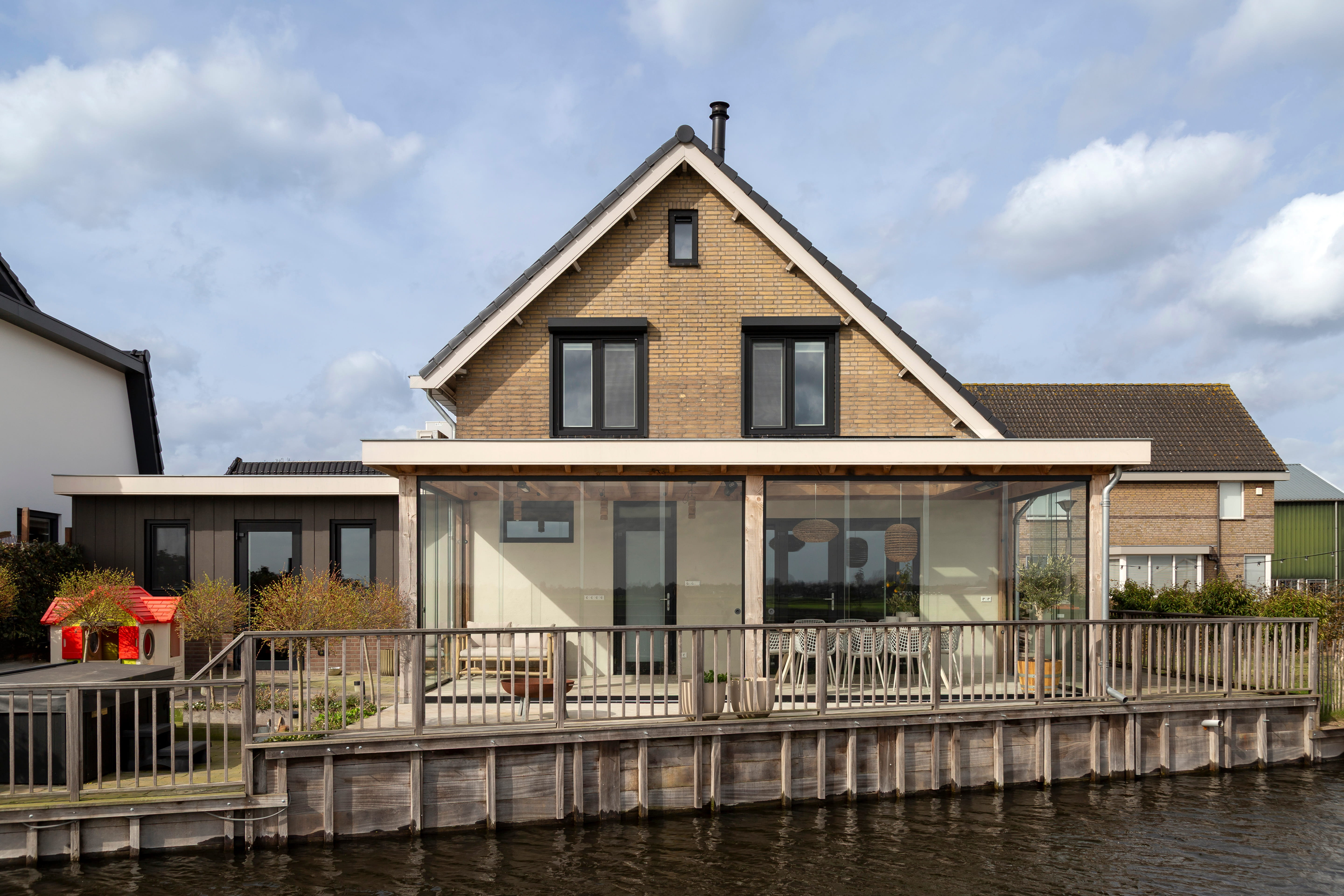 Wij hebben dit project aan de Dorpstraat in Nieuwveen voorzien van alle kozijnen en puien. Er is bij dit project gekozen voor het CUBE-profieltype met HVL-verbindingen in de kleur RAL 7021 (zwartgrijs) met houtnerf en is uitgevoerd met triple isolatieglas (HR+++). De voordeur is uitgevoerd met een sierpaneel in de kleur RAL 7039 (kwarts grijs) met zwarte accessoires.